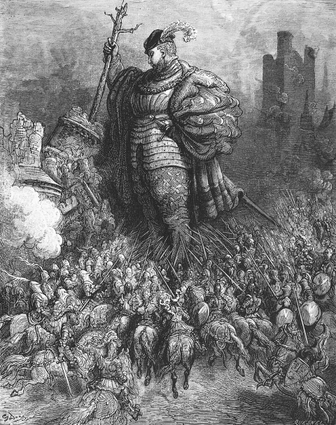 Et alors, en souriant, il détacha sa belle braguette et, tirant à l’air sa mentule, les compissa si aigrement qu’il en noya deux cent soixante mille quatre cent dix-huit, sans compter les femmes et les petits enfants.